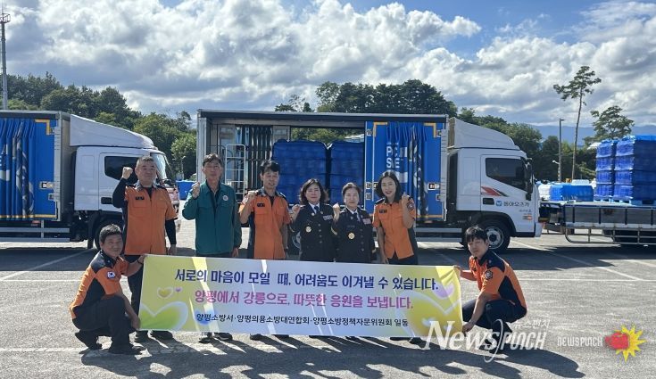 뉴스펀치 김보성 기자 | 강릉시의 가뭄 상황 극복을 돕고자 양평소방서·양평의용소방대연합회·양평소방정책자문위원회 일동은 23일 강릉시에 생수(2L) 9,840병을 기탁했다.