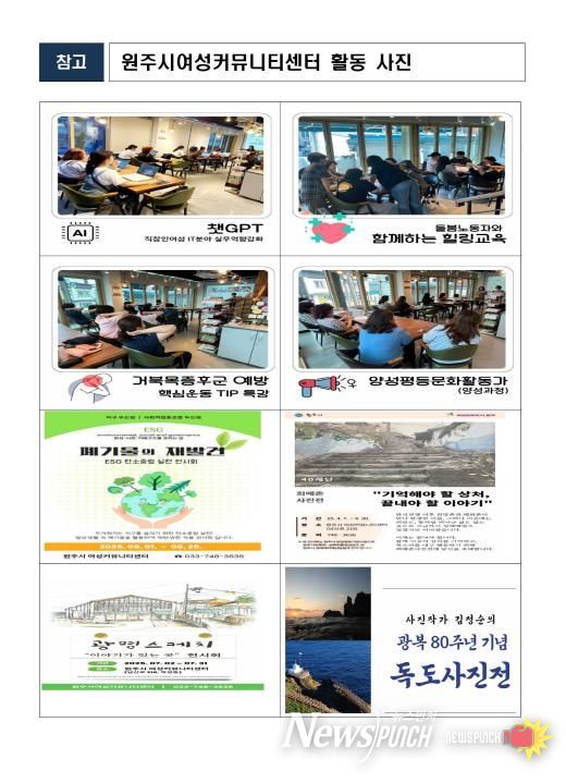 뉴스펀치 김보성 기자 | 원주시여성커뮤니티센터는 9월과 10월 다채로운 교육 프로그램을 운영한다.