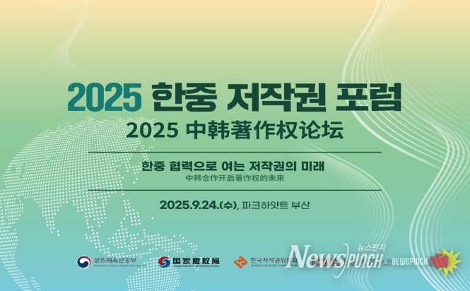 뉴스펀치 김희경 기자 | 문화체육관광부는 한국저작권위원회, 중국 국가판권국과 함께 9월 24일, 파크하얏트 부산에서 ‘2025 한중 저작권 정부간회의(오전)’와 ‘2025 한중 저작권 포럼(오후)’을 열어 저작권 보호를 위한 양국 협력 방안과 인공지능(AI), 블록체인 등 기술 발전에 따른 저작권 정책 변화 및 대응을 논의한다.