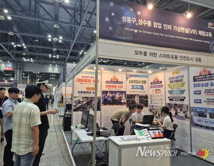 뉴스펀치 김완규 기자 | 서울 성동구는 9월 17일부터 19일까지 경기도 고양 킨텍스에서 열린 ‘2025 대한민국 안전산업박람회(K-SAFETY EXPO 2025)’에 참가해 전국 최초 성수역·연무장길·앤더슨씨 등 지역 주요 일상공간을 배경으로 한 ‘VR(가상현실) 인파위기관리 체험교육’ 프로그램을 선보이며 큰 주목을 받았다고 밝혔다.