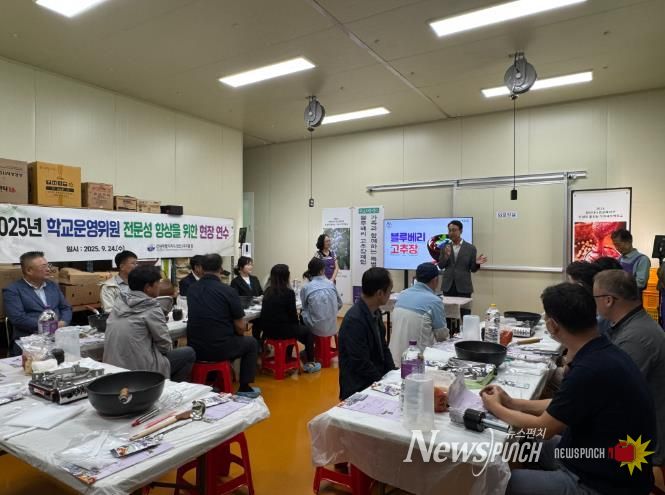이번 연수는 전통 발효식품 제조 과정인 ‘블루베리 고추장 만들기 체험’을 통해 지역과 함께 성장하는 교육공동체를 실현하고, 학교운영위원의 역량과 리더십, 소통 능력을 배양하는 취지로 마련됐다.