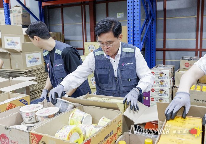 나눔 꾸러미에는 갈비탕, 잡채, 즉석밥과 같은 간편식부터 김부각, 약과 등 12종의 식품이 가득 담겼다.