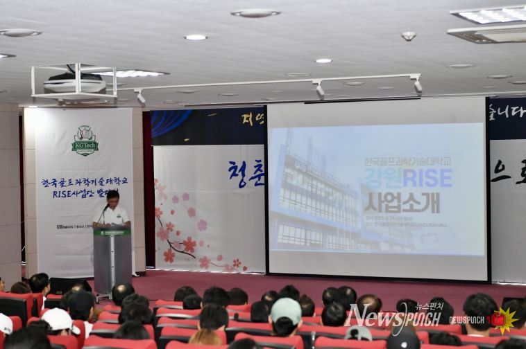 뉴스펀치 김길룡 기자 | 한국골프과학기술대학교는 24일 본관 대강당에서 ‘라이즈(RISE) 사업단’ 발대식을 열고 지역 혁신 중심 대학지원체계 구축에 본격 나섰다.