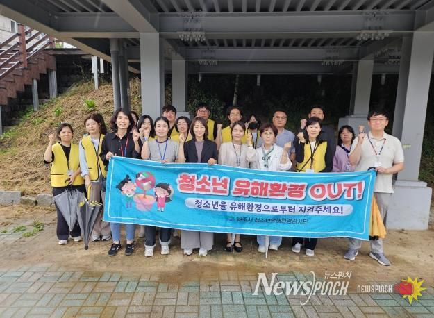 뉴스펀치 김길룡 기자 | 원주시는 2025학년도 2학기 개학을 맞아 지난 24일, 청소년 유해환경 감시단과 함께 태장2동 일대에서 청소년 유해환경 단속 및 캠페인을 펼쳤다.
