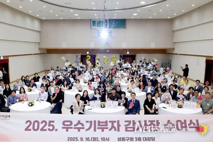 뉴스펀치 김완규 기자 | 서울 성동구는 지난 9월 16일 우리 주변의 어려운 이웃에게 나눔을 실천해 온 기부자들에게 감사의 마음을 전하고자 '2025 우수기부자 감사장 수여식'을 개최했다.