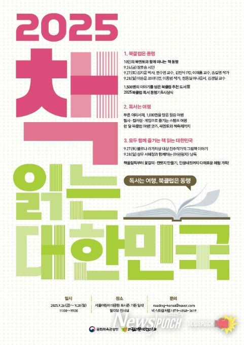 뉴스펀치 김희경 기자 | 문화체육관광부는 한국출판문화산업진흥원과 함께 9월 26일부터 28일까지 서울어린이대공원(서울 광진구) 포시즌 가든과 팔각당 전시실에서 ‘독서는 여행, 북클럽은 동행’을 주제로 ‘2025 책 읽는 대한민국’을 처음 개최한다.