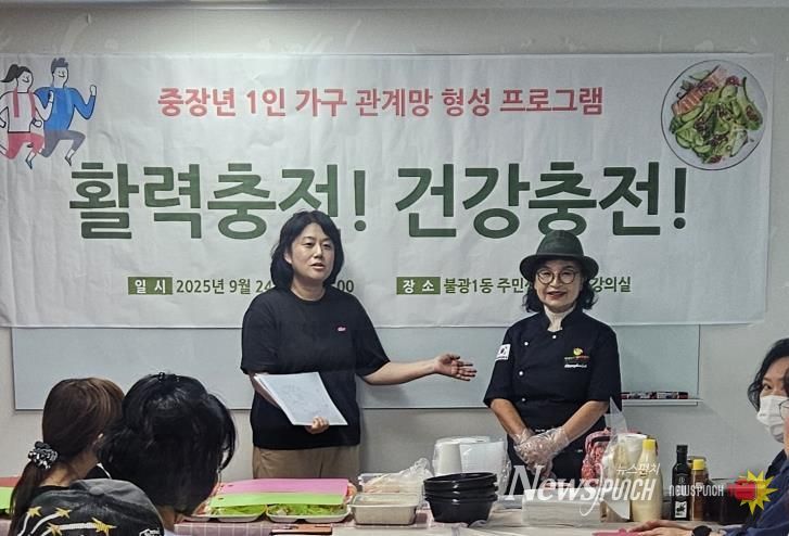 최해범 불광1동장은 “이번 ‘활력충전, 건강충전’ 프로그램을 통해 중장년 1인 가구가 스스로 건강을 지키고 이웃과 어울릴 수 있는 기회가 됐기를 바란다”며 “앞으로도 고독사 위험군 발굴과 맞춤형 프로그램 운영을 위해 노력하겠다”고 말했다.