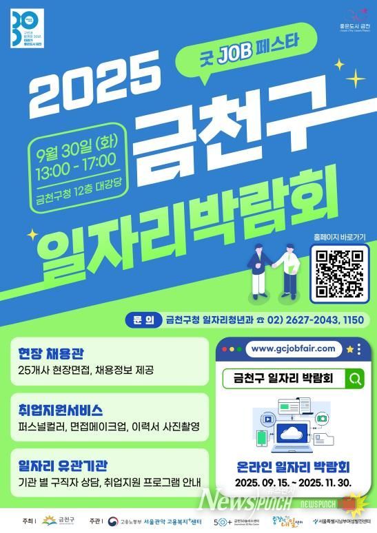뉴스펀치 김완규 기자 | 금천구는 오는 9월 30일 구직자에게는 좋은 일자리를, 기업에게는 우수 인재 채용의 기회를 제공하기 위해 ‘2025년 굿 JOB 페스타 금천구 일자리박람회’를 개최한다고 밝혔다.