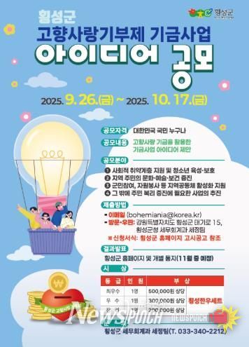 뉴스펀치 김길룡 기자 | 횡성군이 군민과 국민이 함께 만드는 지속가능한 지역 발전을 위해'고향사랑기부제 기금사업 아이디어 공모'를 진행한다.