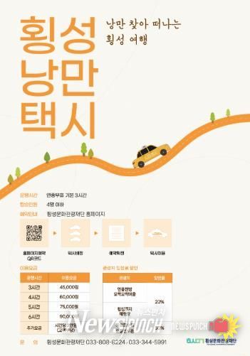 뉴스펀치 김길룡 기자 | 횡성군과 횡성문화관광재단은 ‘2025 강원 방문의 해’를 기념해 낭만택시 특별 할인 행사를 오는 11월 30일까지 진행한다고 밝혔다.