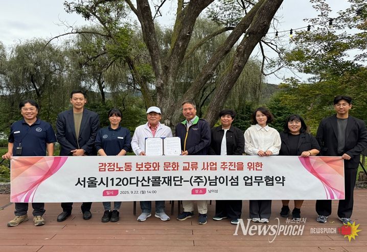 뉴스펀치 김완규 기자 | 서울시 대표적 민원 소통 창구인 서울시120다산콜재단과 주식회사 남이섬이 두 손을 맞잡았다. 양 기관은 9월 22일, 남이섬에서 문화·예술 및 자연을 통한 감정노동 종사자 보호 및 치유 프로그램 개발 및 운영을 위한 업무협약(MOU)을 체결했다.