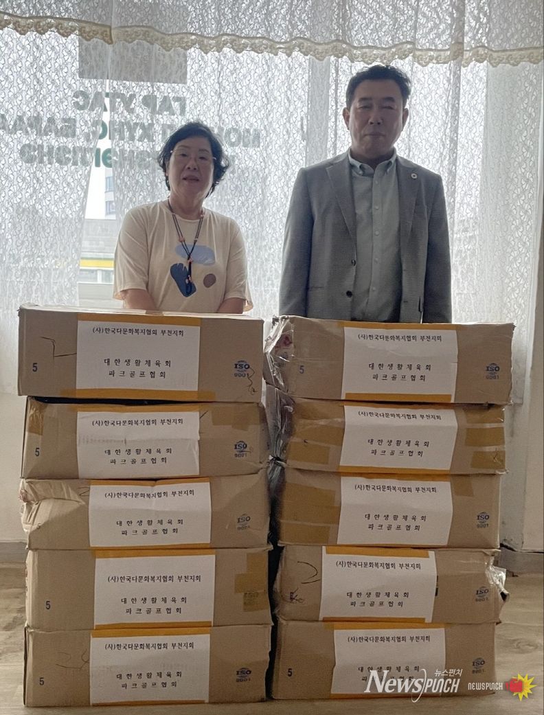 뉴스펀치 조은별 기자 | 사단법인 대한생활체육회 파크골프협회(회장 박창완, 사무처장 이해용)는 지역사회 나눔과 이웃사랑 실천의 일환으로 부천 관내 병원 및 복지단체에 실내용 슬리퍼를 기증했다.