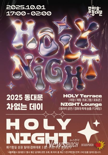 뉴스펀치 김완규 기자 | 서울 동대문구는 오는 10월 1일 오후 5시부터 다음날 오전 2시까지 회기역 인근 회기랑길(경희대로1길 및 경희대로1가길 일대)에서 ‘2025 차없는 데이-HOLY NIGHT’ 행사를 개최한다고 밝혔다.
