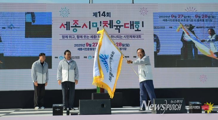 뉴스펀치 박세훈 기자 | 세종시체육회는 2025년 9월 27일 세종시민운동장 보조경기장 특설무대에서 '제14회 세종시민체육대회' 개회식을 성황리에 개최했다.