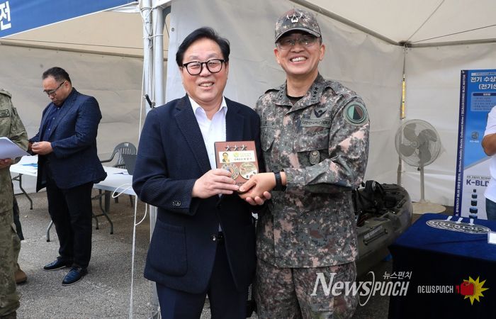 뉴스펀치 김길룡 기자 | 최상기 인제군수가 국제과학화전투경연대회의 성공적인 개최를 위해 기여한 공로를 인정받아 육군교육사령관으로부터 감사패를 받았다.