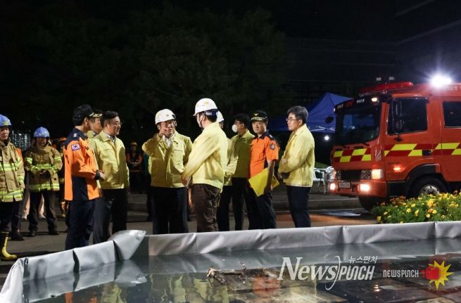 뉴스펀치 김용희 기자 | 김민석 국무총리는 9월 27일 국가정보자원관리원에서 발생한 화재가 완진(18:00)으로 마무리됨에 따라, 곧바로 화재 현장을 찾아 상황을 점검하고, 화재 진압에 투입된 소방대원들을 격려했다.