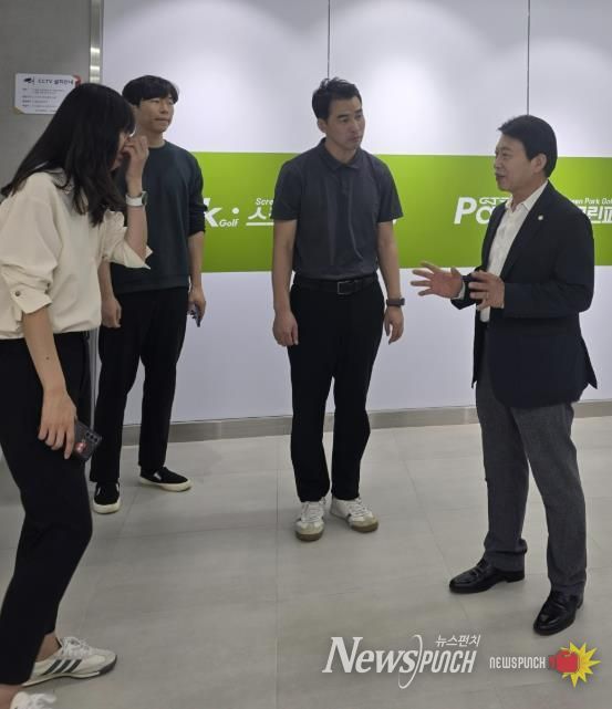 뉴스펀치 김완규 기자 | 노윤상 강북구의회 국민의힘 대표 의원(삼양동·송천동·삼각산동)은 지난 22일, 강북종합체육센터(미아동 811-2)에 새롭게 조성된 실내 파크골프장의 시범 운영 첫날 현장을 찾아 어르신들과 직접 소통하며 운영 상황을 점검했다.
