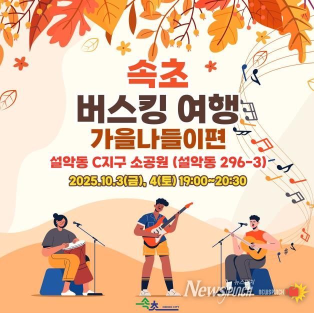 뉴스펀치 김길룡 기자 | 속초시가 추석 연휴의 시작과 함께 시민과 관광객에게 특별한 문화예술 향유 기회를 선사하기 위해 ‘속초 버스킹 여행-가을나들이편’을 오는 10월 3일, 4일 오후 7시부터 8시 반까지 설악동 C지구 소공원에서 선보인다.