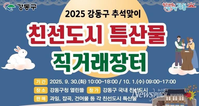 뉴스펀치 김완규 기자 | 강동구는 2025년 추석을 맞이해 오는 9월 30일과 10월 1일 이틀간 강동구청 열린뜰에서 ‘친선도시 특산물 직거래장터’를 개최한다고 29일 밝혔다.