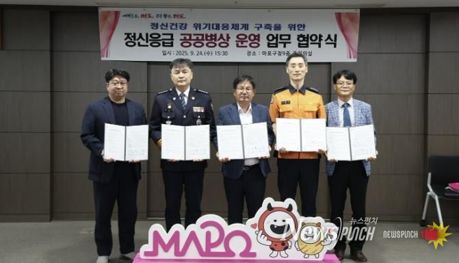 뉴스펀치 김완규 기자 | 마포구는 9월 24일, 구청 9층 중회의실에서 ‘정신응급 공공병상 운영’을 위한 업무협약식을 열고, 고위험 정신질환자에 대한 24시간 신속 입원·치료 체계를 본격 가동했다.