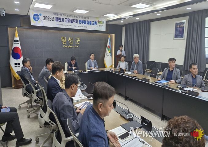 뉴스펀치 김길룡 기자 | 횡성군은 29일 군청 2층 소회의실에서 김명기 군수를 비롯한 국과소장 등 고위직 공무원 30여 명이 참석한 가운데 고위공직자 반부패 청렴 교육을 실시했다.