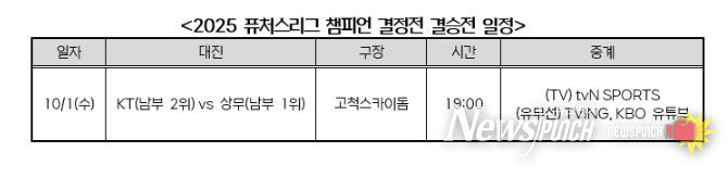 9월 29일(월) 열린 2025 퓨처스리그 챔피언 결정전 준결승전에서 남부리그 2위 KT는 북부리그 1위 한화를, 남부리그 1위 상무는 북부리그 2위 LG를 꺾고 각각 결승 진출에 성공했다.