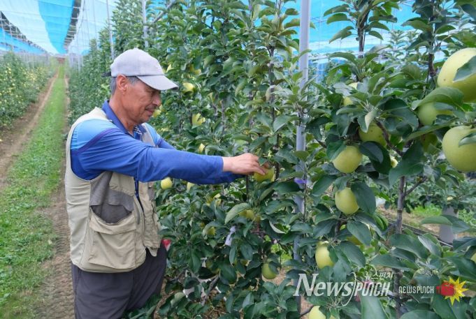 김 씨가 재배 중인 시나노골드는 일본 나가노현에서 개발된 품종으로, 당도가 높고 과즙이 풍부하며 저장성이 뛰어나 소비자들에게 큰 인기를 끌고 있다.