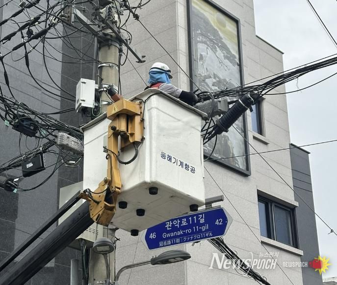 뉴스펀치 김완규 기자 | 관악구가 가을철 태풍 및 추석 명절에 대비해 관내 공중선과 전신주에 대한 안전 점검을 9월 한 달 간 실시했다.