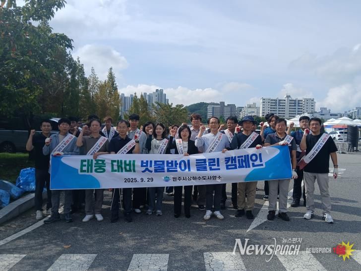 뉴스펀치 김길룡 기자 | 원주시상하수도사업소는 쾌적한 도시환경 조성과 건강한 수생태계 보전을 위해 지난 29일 소장을 비롯한 직원 60여 명과 함께 태풍 대비 ‘빗물받이 클린’ 캠페인을 전개하고, 환경부에 하수 중점관리지역 지정을 신청했다.