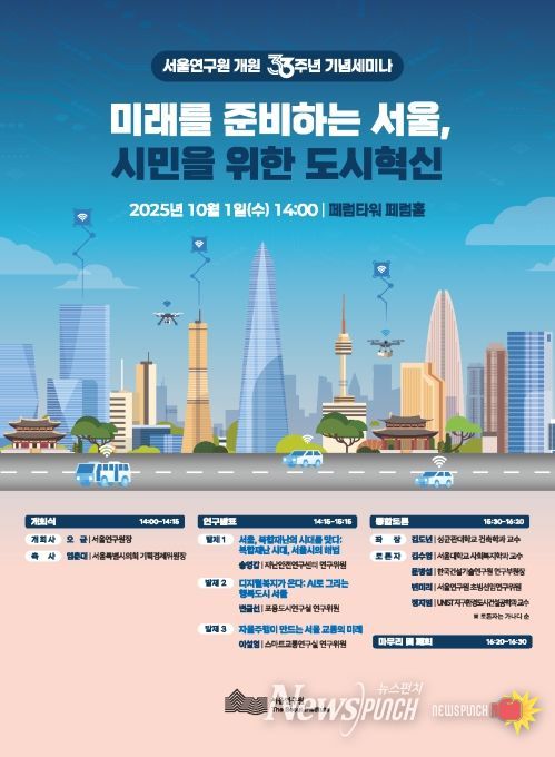 뉴스펀치 김완규 기자 | 서울연구원은 10월 1일 오후 2시, 페럼타워 페럼홀에서 '미래를 준비하는 서울, 시민을 위한 도시혁신'을 주제로 개원 33주년 기념세미나를 개최한다.