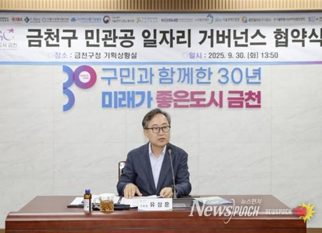 뉴스펀치 김완규 기자 | 금천구는 지역 내 일자리 창출 활성화를 위해 금천구 민관공 일자리 거버넌스를 구성하고, 30일 참여기관들이 모여 업무협약식을 개최했다고 밝혔다.