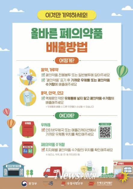 가정에서 발생한 폐의약품은 회수 봉투나 일반 편지 봉투에 ‘폐의약품’이라고 표시해 밀봉한 후 가까운 우체통에 넣으면 된다. 우체국이 이를 회수해 시흥시청에 전달하면 안전하게 처리된다. 다만, 액상 의약품은 우편물 훼손 우려가 있어 기존 보건소나 행정복지센터 전용 수거함을 이용해야 한다.