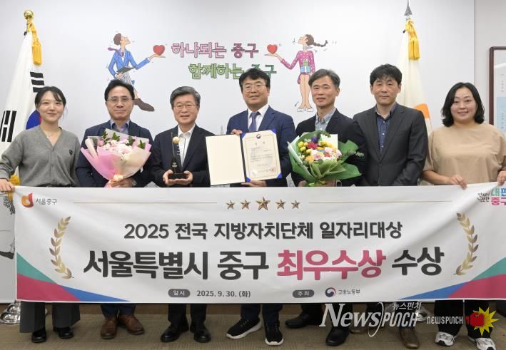 뉴스펀치 김완규 기자 | 서울 중구가 고용노동부가 주관한 ‘2025년 전국 지방자치단체 일자리대상’우수사업 부문에서 전국1위인 최우수상을 차지했다. 대한민국 관광1번지인 중구는 지역기업과 상생하며 관광산업 인력난과 중장년층 구직난을 동시에 해결해 높은 평가를 받았다.