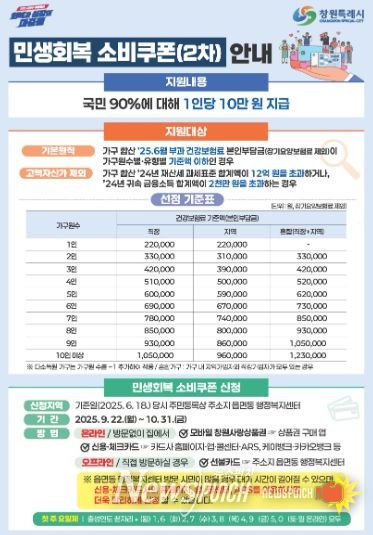 뉴스펀치 김길룡 기자 | 창원특례시는 추석 명절을 앞두고 민생회복 소비쿠폰 2차 지급을 통해 지역경제에 활력을 불어넣고 소상공인들에게 힘을 보내고 있다. 이번 2차 지급 대상은 총 91만 5,548명으로, 9월 22일부터 지급이 시작된 지 며칠 만에 벌써 84.5%에 해당하는 77만 3,719명이 발급받아 시민들의 높은 관심을 입증했다.