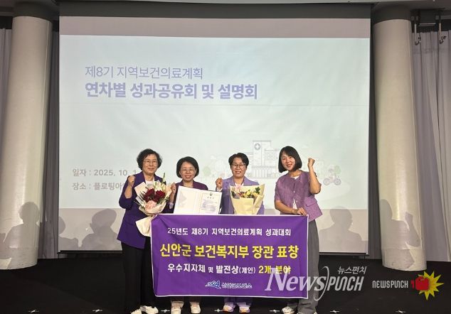 뉴스펀치 김길룡 기자 | 신안군이 보건복지부 주최 ‘2025년 제8기 지역보건의료계획 성과대회’에서 보건복지부 장관 표창 2관왕을 차지하는 영예를 안았다.