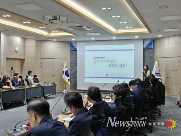 뉴스펀치 김길룡 기자 | 삼척시는 10월 1일 오전 10시 시청 본관 지하 상황실에서 고위직을 대상으로 직장 내 성희롱‧성폭력 예방 교육을 실시했다.