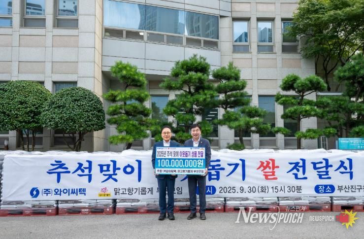 뉴스펀치 김길룡 기자 | 부산 부산진구는 ㈜와이씨텍·맑고향기롭게 부산모임에서 9월 30일 부산진구청을 방문하여 추석을 맞이하여 어려운 이웃들에게 전달해 달라며 백미 10kg 2,500포(환가액 1억 원)를 기탁했다고 전했다.