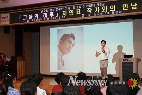 뉴스펀치 김길룡 기자 | 부산 남구는 지난 9월 30일 남구청 개청 50주년을 맞이해, 구청 1층 대강당에서 '제20기 등대빛 아카데미' 3강으로 배우 겸 작가 차인표 씨를 초청해 특별강연을 열었다.