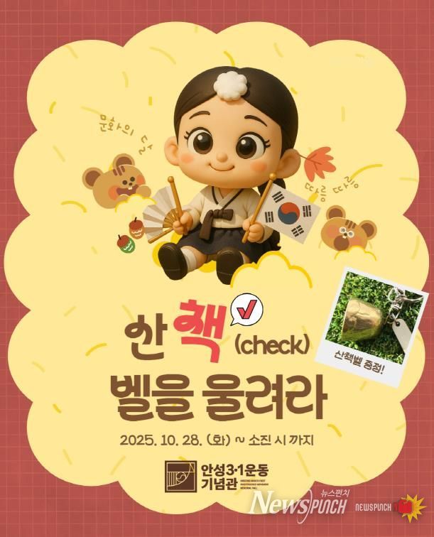 뉴스펀치 탁상훈 기자 | 안성3.1운동기념관은 10월 문화의 달을 맞이하여 10월 28일(화)부터 특별 체험활동 “산책(Check) 벨을 울려라”를 진행한다.