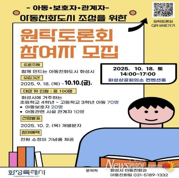 뉴스펀치 탁상훈 기자 | 화성특례시가 오는 18일 오후 2시 화성상공회의소 컨벤션홀에서 개최되는 ‘아동친화도시 조성을 위한 원탁토론회’ 참가자를 모집한다고 2일 밝혔다.