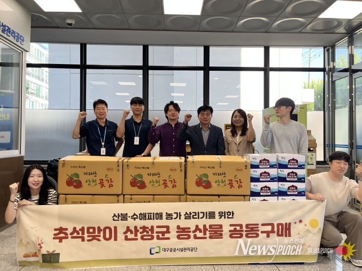 뉴스펀치 조평훈 기자 | 대구공공시설관리공단은 2025년 산불과 수해로 큰 피해를 입은 경남 산청군 농가를 지원하기 위해 추석을 앞두고 임직원 농산물 공동구매를 진행했다.