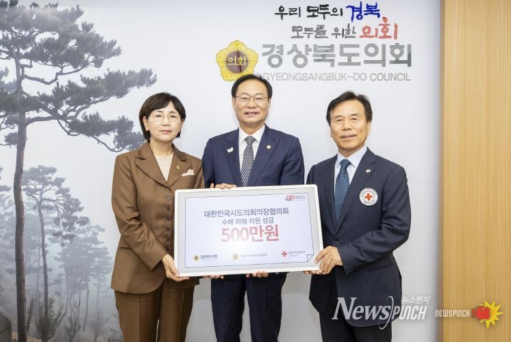 뉴스펀치 김길룡 기자 | 경상북도의회는 10월 2일 도의회 의장실에서 재난구호금 5백만원을 대한적십자사 경북지사에 전달했다.