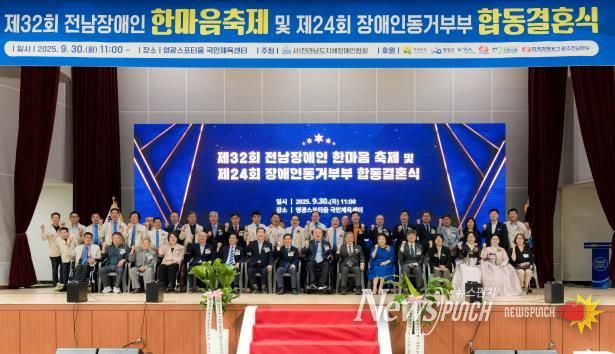 뉴스펀치 박세훈 기자 | 영광군은 지난 30일 영광스포티움 국민체육센터에서 22개 시·군 장애인단체 등 1,500여 명이 참석한 가운데‘제32회 전남장애인한마음대축제 및 제24회 장애인동거부부 합동결혼식’을 성황리에 개최했다고 밝혔다.