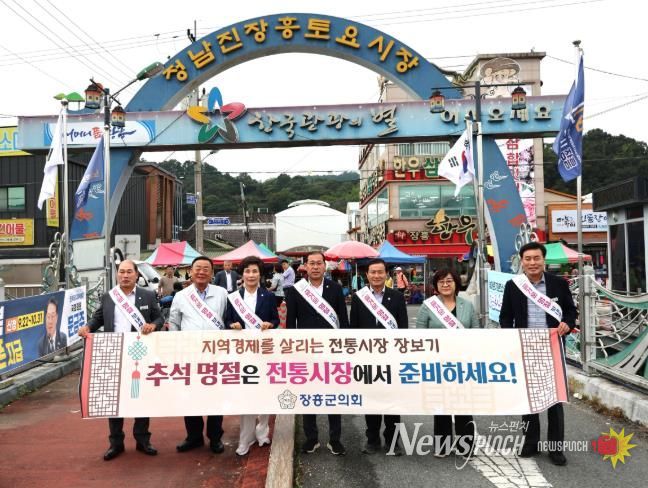 뉴스펀치 김길룡 기자 | 장흥군의회는 10월 2일, 지역 대표 전통시장인 정남진 토요시장에서 ‘추석 맞이 장보기 행사’를 열었다.