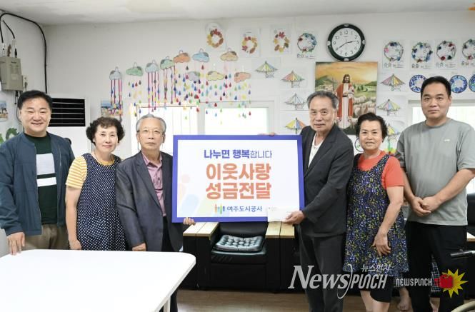 뉴스펀치 탁상훈 기자 | 여주도시공사는 1일 추석 명절을 맞이하여 여주시 금사면에 위치한 관내 복지시설 희망의 집을 방문해 ‘이웃사랑 성금’ 150만 원을 전달하며 따뜻한 나눔을 실천했다.