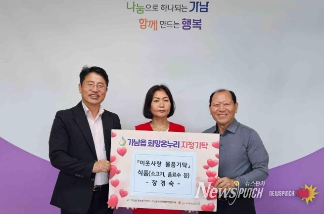 뉴스펀치 탁상훈 기자 | 지난 9월 30일 장경숙(가남읍 주민)씨가 가남읍 내 어려운 이웃들을 위해 소고기와 음료수 등 식품을 가남읍 행정복지센터에 기탁했다.
