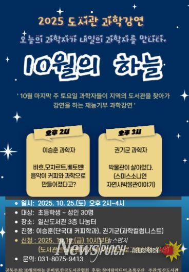 뉴스펀치 탁상훈 기자 | 고양특례시 일산도서관에서는 과학자들의 재능기부 도서관 과학 강연프로그램 ‘10월의 하늘’을 운영한다.