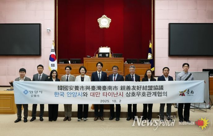 뉴스펀치 탁상훈 기자 | 안양시의회는 10월 2일, 대만 타이난시 황웨이저 시장 등 관계 공무원 7명이 안양시의회를 방문했다고 밝혔다.