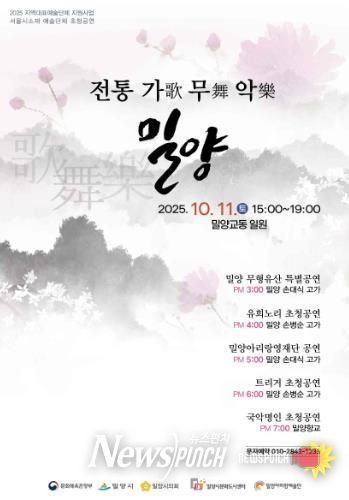 행사는 밀양 지역 예술인과 서울 소재 예술단체가 참여하는 초청 공연으로 구성된다.