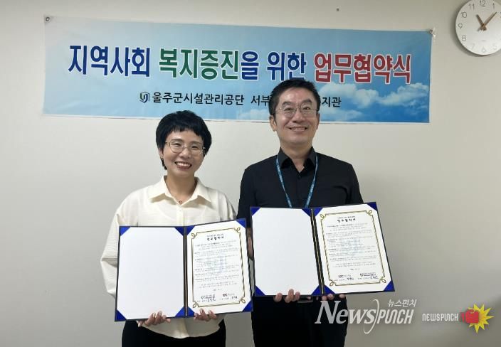 뉴스펀치 김길룡 기자 | 울주군시설관리공단 서부종합사회복지관은 2025년 10월 2일 오전 11시, 지역주민의 복지 증진과 복지혜택 강화를 위하여 하다교육 협동조합과 업무협약을 체결했다.
